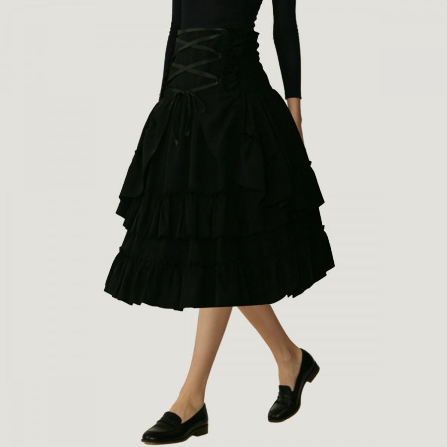 Skirt: Multi-layered ruffles, lace embellishment at the hem, vintage and refined