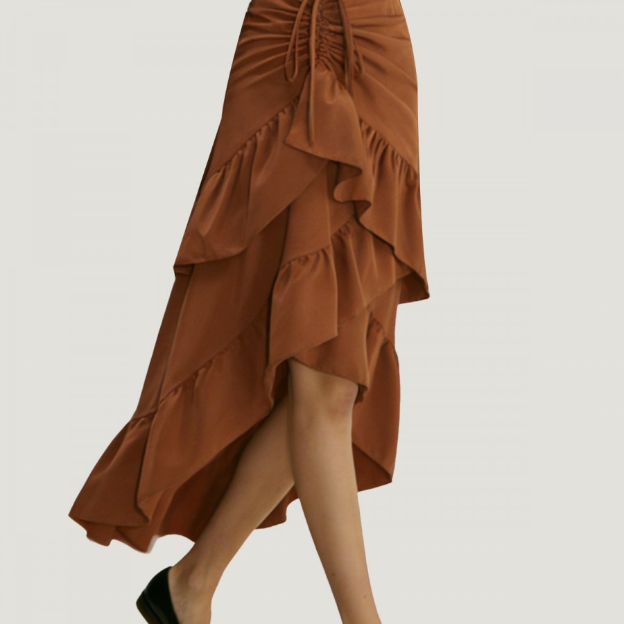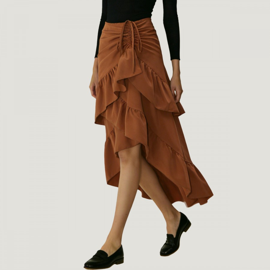 This skirt is made from a high-quality polyester and cotton blend, making it lightweight, breathable, comfortable, and wrinkle-resistant. The classic A-line cut and high waist effectively flatter the waistline, elongating the legs and creating a more elegant silhouette. Delicate ruffles at the hem add a touch of sophistication and movement, resulting in a sweet and fresh style perfect for spring and summer.