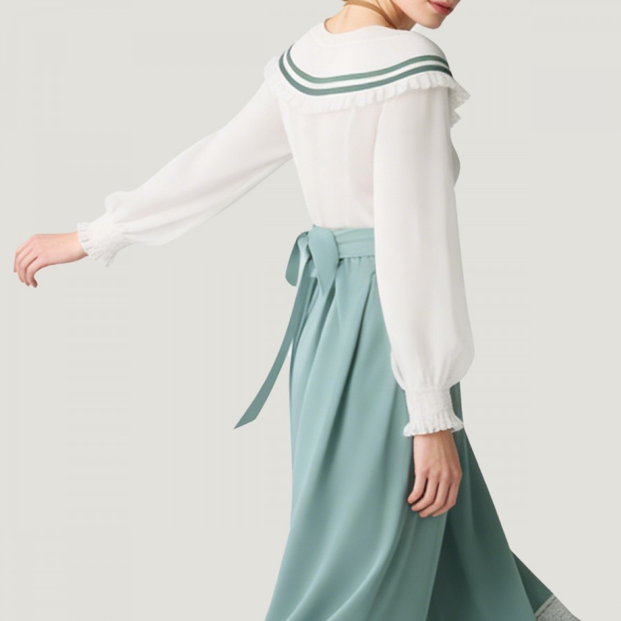 High-waisted skirt with contrasting white and green color scheme