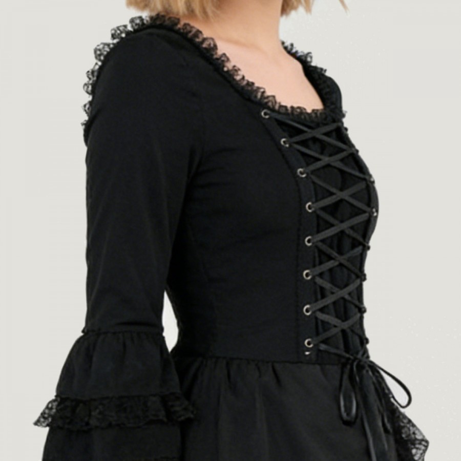 This dress is designed around the Victorian and medieval Renaissance styles, incorporating steampunk and Gothic aesthetics for a glamorous and dramatic overall look. The garment emphasizes the combination of structure and embellishment, using formal tailoring and accessories to create a strong retro vibe. Made from polyester, the fabric is smooth and has excellent shaping properties, making it suitable for extended wear and display during festive events. The overall design balances stage presence and character accuracy, making it suitable for various themed occasions.