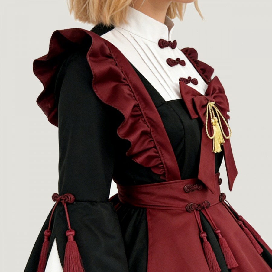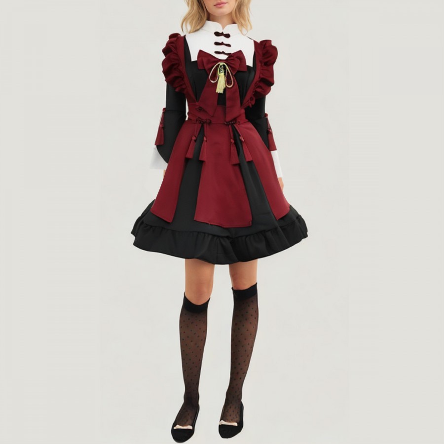 This dress is inspired by Lolita maid outfits, featuring a sweet and elegant overall design that showcases classic girlish style and retro charm. The skirt has a naturally voluminous, layered silhouette, with details such as ruffles and a cinched waist highlighting its three-dimensional shape and form. Made from high-quality polyester, it is lightweight and soft, yet retains its shape well and is durable, easy to wash and care for. This skirt can be worn alone with Lolita or maid-style tops, or combined with other cosplay costumes to create a complete look.